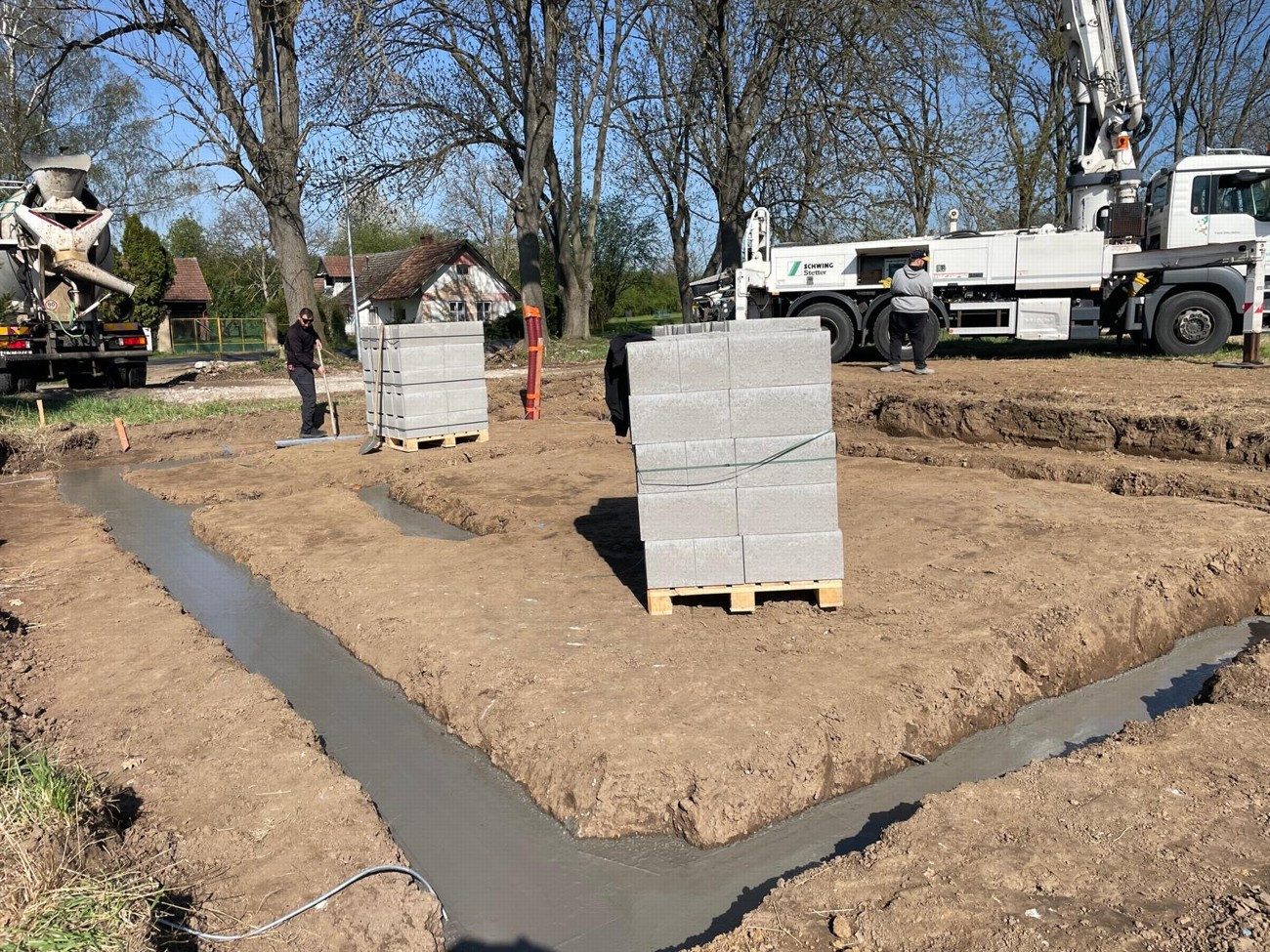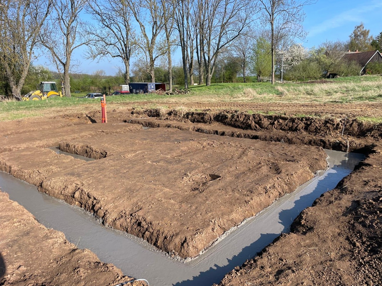 - Základová deska – ZBtl30, betonC16/20, štěrk, prostupy, rozvod kanalizace, zateplení základu XPS tl. 8cm