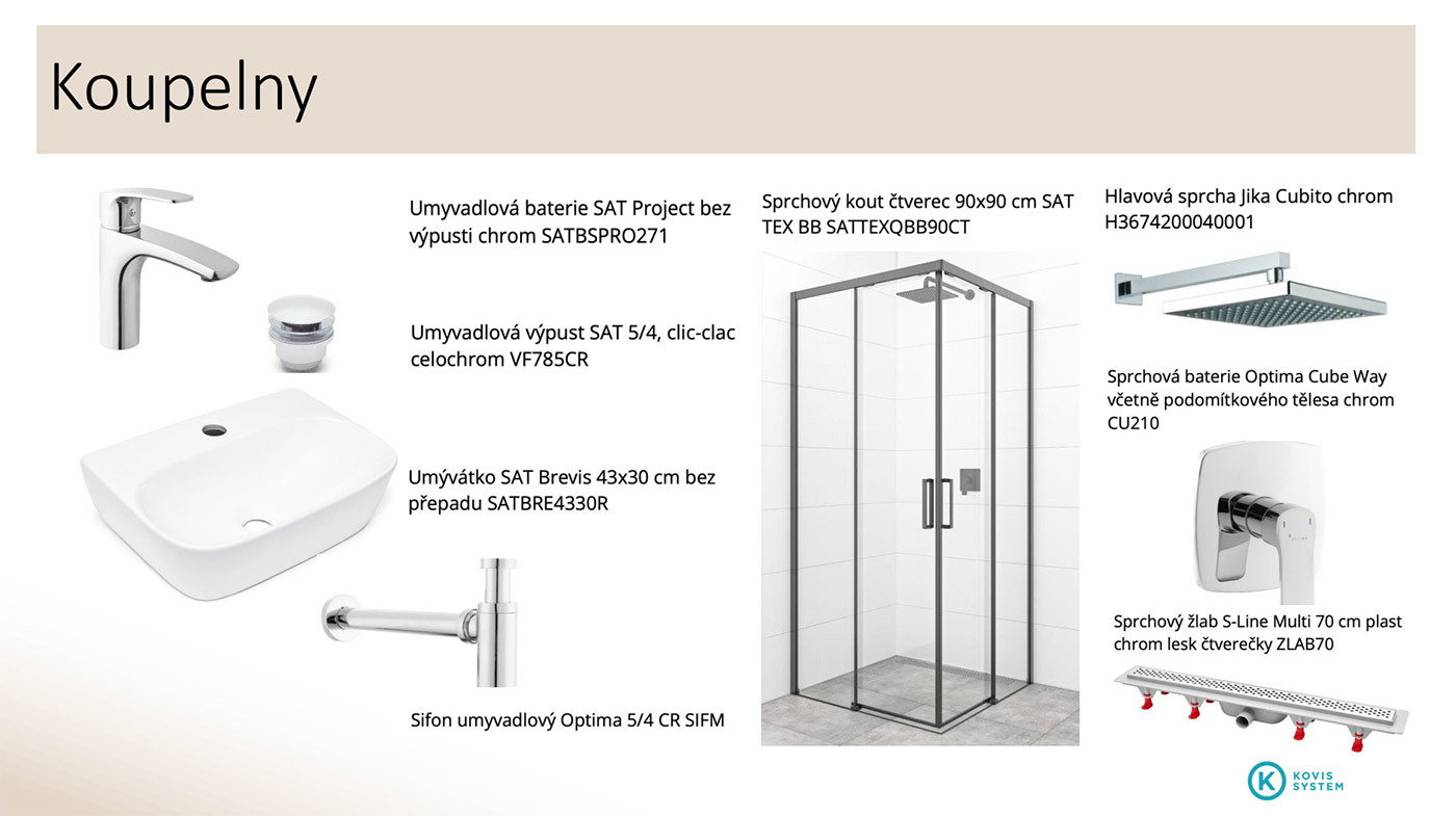 - Obklady a dlažby koupelny, WC, případně technické místnosti