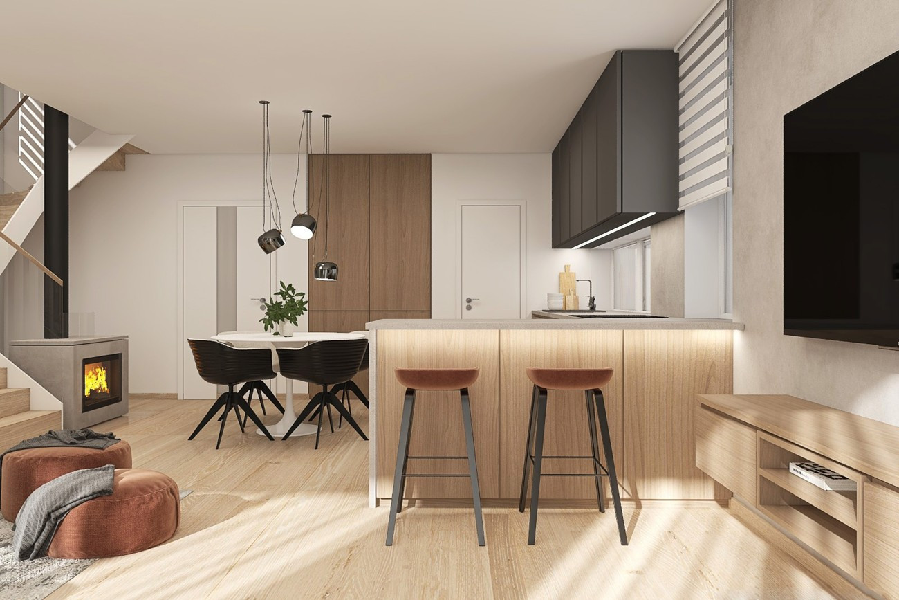 Aktuálně vymyšlené domu jsou patrové, lze však provést i přízemní dům. Jejich dispozice je vymyšlena na 4+kk a užitná plocha domu je 100m2. Avšak je zde možnost vše pozemněnit dle Vašeho přání, pouze musíme zachovat charakter domu, tak jak vidíte na fotografii u tohoto projektu.